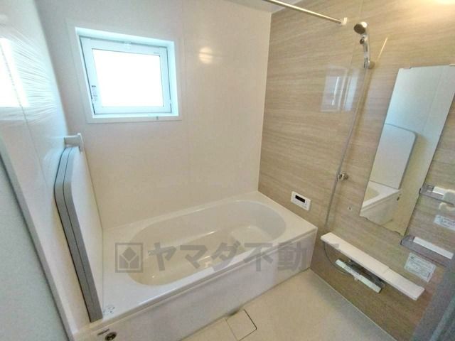 1日の疲れを癒すくつろぎのバスルーム。足を伸ばしてもゆったりと入れるサイズです。お子様と一緒にお風呂に入っても狭くないですね^^