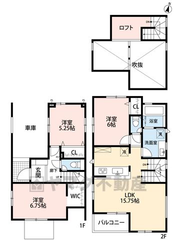 LDK15.7畳(2F)、洋5.2畳(1F)、洋6.7畳(1F)、洋6畳(2F)、その他0畳 |