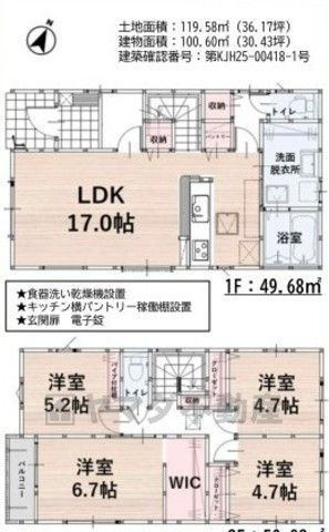 LDK17畳(1F)、洋4.7畳(2F)、洋5.2畳(2F)、洋6.7畳(2F) |