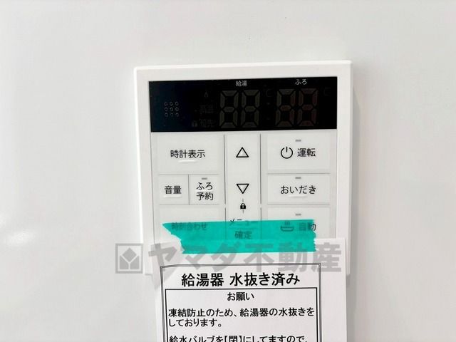 キッチン横からお湯張り、追い炊き、足し湯がボタン一つで楽々操作できる給湯機リモコンです^^忙しい夕飯の準備の時間帯に重宝しますね。