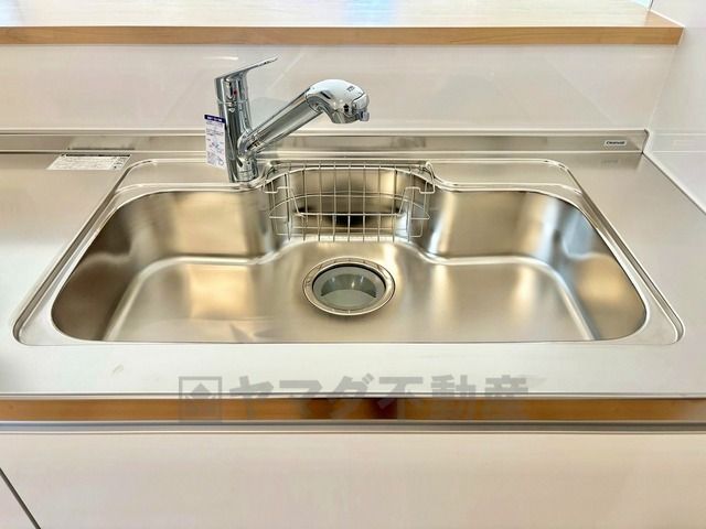 大きなお鍋も楽々洗える幅の広いシンクです^^ステンレスシンクなので簡単にお掃除できますよ。洗剤やスポンジもすっきりできる収納付き。