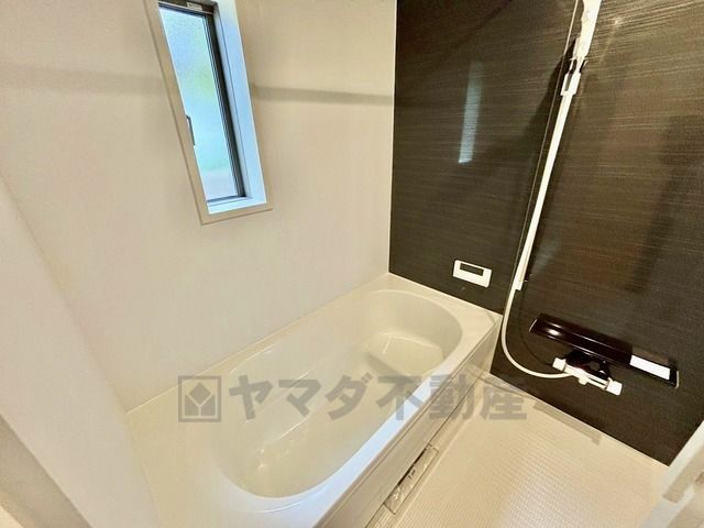 1日の疲れを癒すくつろぎのバスルーム。足を伸ばしてもゆったりと入れるサイズです。お子様と一緒にお風呂に入っても狭くないですね^^