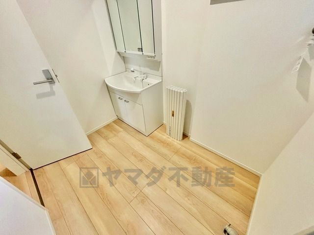 洗面台、洗濯機置き場、バスルームが連なっている、生活導線の考えられた作りになっています。 窓付きなので換気もしっかりできます^^