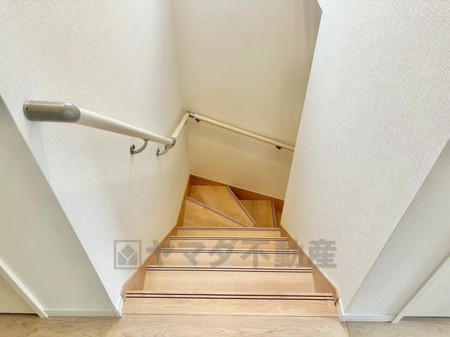 日中でも暗くなりがちな階段には、小窓を配置し採光も考えられたつくり^^手摺付きなので安全に上り下りできますね^^