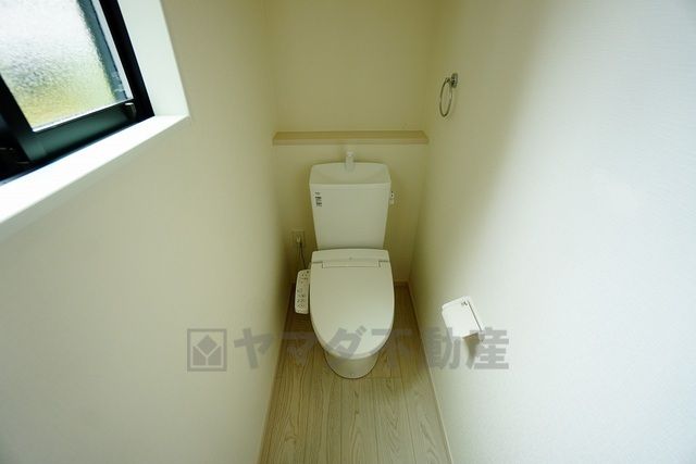 同仕様写真。温水洗浄機付トイレです。節水機能もあるので、安心して使えますね。もちろん、1階2階の2ヶ所にトイレがあるので、忙しい朝にもゆとりができますね。