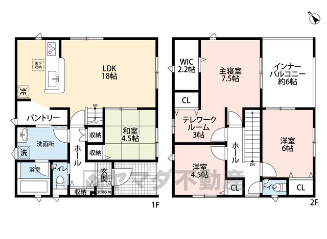 LDK17.7畳(1F)、洋4.5畳(2F)、洋4.8畳(2F)、洋6畳(2F) |