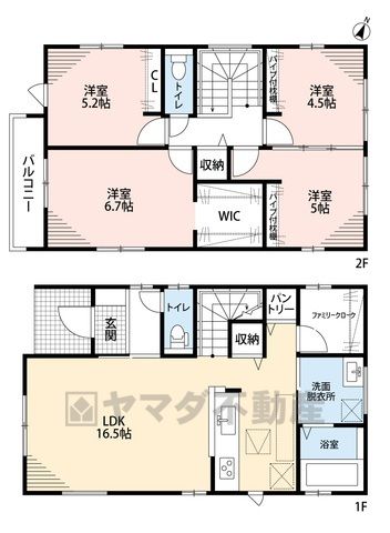 DK16.5畳(1F)、洋6.7畳(2F)、洋5.2畳(2F)、洋5畳(2F)、洋4.5畳(2F) |