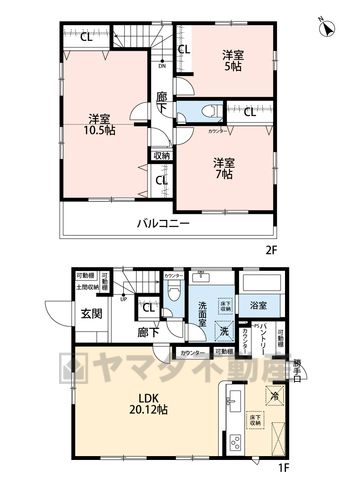 LDK20.1畳(1F)、洋10.5畳(2F)、洋7畳(2F)、洋5畳(2F) |