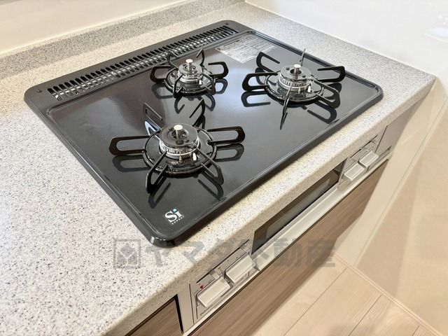 3種類の料理が同時に調理できる、3口ガスコンロ。