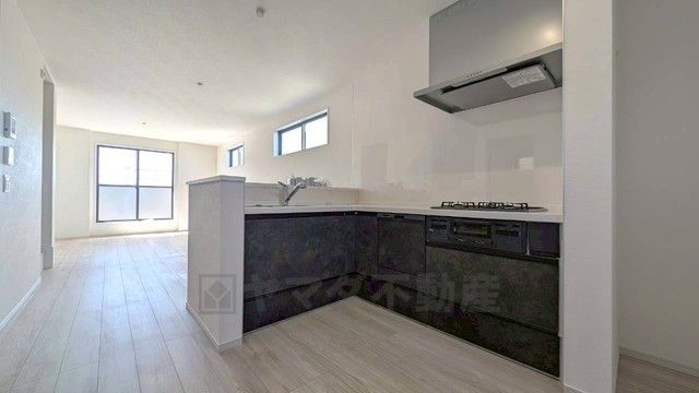 リビングダイニングを見渡せるキッチンです。家族とコミュニケーションをとりながら、楽しくお料理や片付けができそうです。