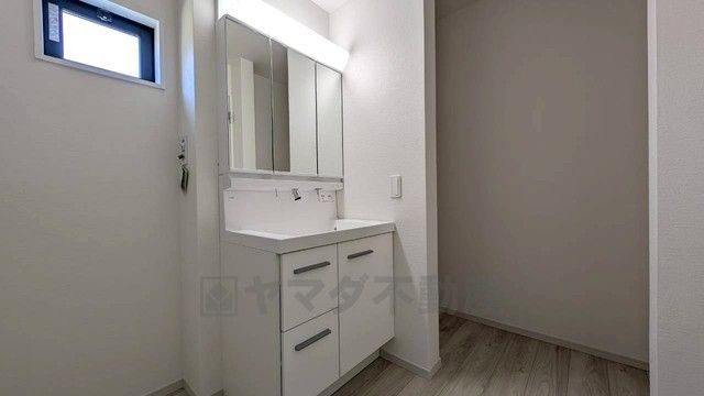 洗面台、洗濯機置き場、バスルームが連なっている、生活導線の考えられた作りになっています。