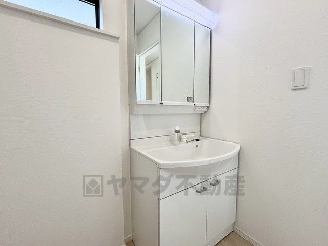洗面台、洗濯機置き場、バスルームが連なっている、生活導線の考えられた作りになっています。