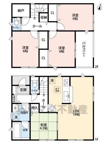 LDK16畳(1F)、和4.5畳(1F)、洋6畳(2F)、その他0畳(2F) |