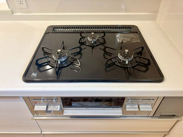 3種類の料理が同時に調理できる、3口ガスコンロ。忙しい夕食の支度時間が短縮できて効率よくお料理が楽しめます。