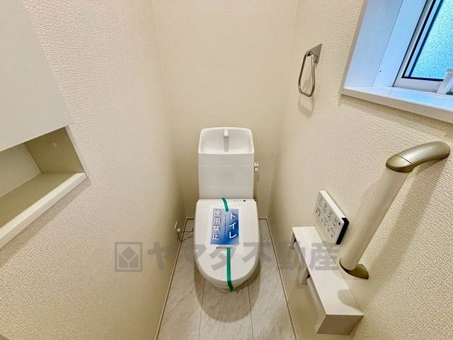 ウォシュレット付きトイレです。1階2階の2ヶ所にトイレがあるので、忙しい朝にもゆとりができますね^^ 温水洗浄便座リモコン付き。