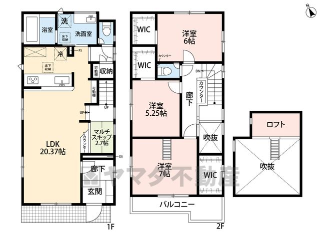 LDK20.3畳(1F)、洋6畳(2F)、洋5.2畳(2F)、その他2畳(1F) |