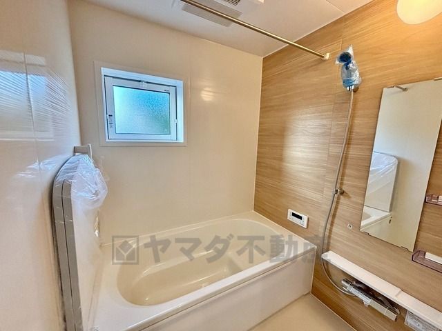 1日の疲れを癒すくつろぎのバスルーム。足を伸ばしてもゆったりと入れるサイズです。お子様と一緒にお風呂に入っても狭くないですね^^