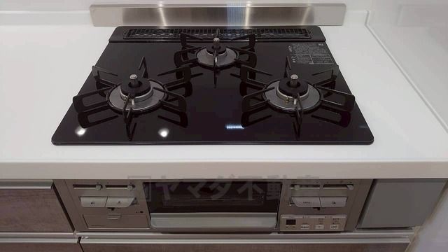 3種類の料理が同時に調理できる、3口ガスコンロ。忙しい夕食の支度時間が短縮できて効率よくお料理が楽しめます。