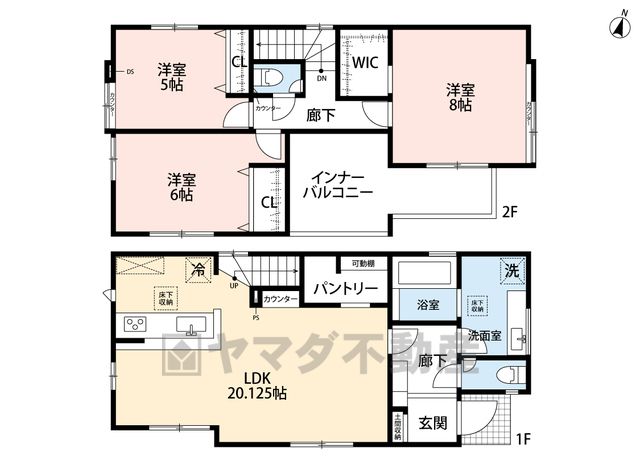 LDK20.1畳(1F)、洋5畳(2F)、洋6畳(2F)、洋8畳(2F) |
