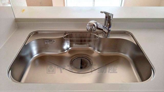 大きなお鍋も楽々洗える幅の広いシンクです^^ステンレスシンクなので簡単にお掃除できますよ。洗剤やスポンジもすっきりできる収納付き。