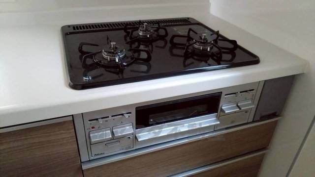 3種類の料理が同時に調理できる、3口ガスコンロ。忙しい夕食の支度時間が短縮できて効率よくお料理が楽しめます。