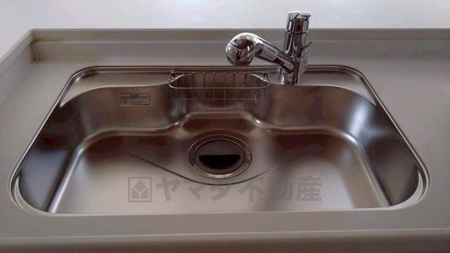 大きなお鍋も楽々洗える幅の広いシンクです^^ステンレスシンクなので簡単にお掃除できますよ。洗剤やスポンジもすっきりできる収納付き。