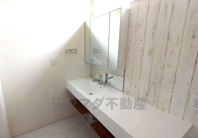 三面鏡にハンドシャワー付きで使いやすい洗面台です^^