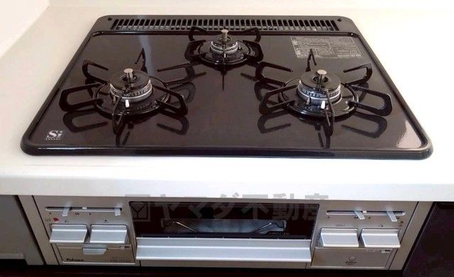 3種類の料理が同時に調理できる、3口ガスコンロ。