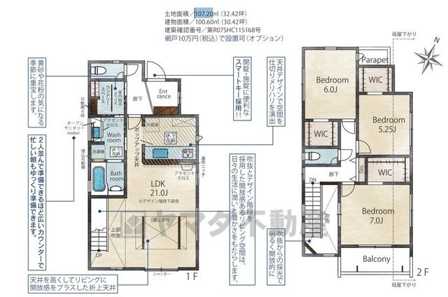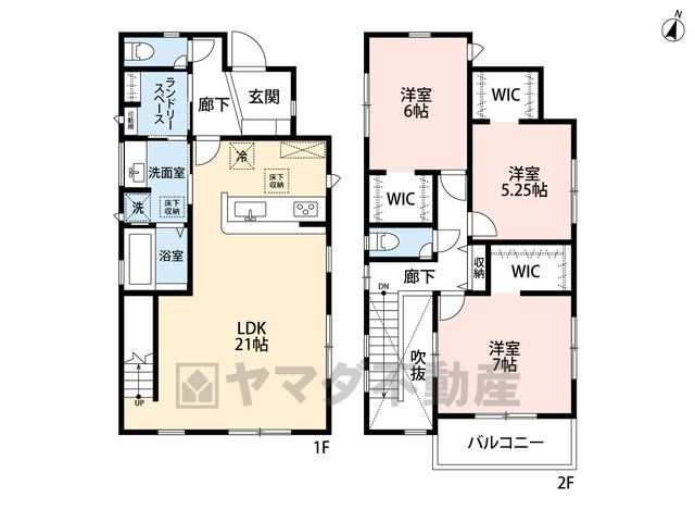 LDK21畳(1F)、洋6畳(2F)、洋5.2畳(2F)、洋7畳(2F) |