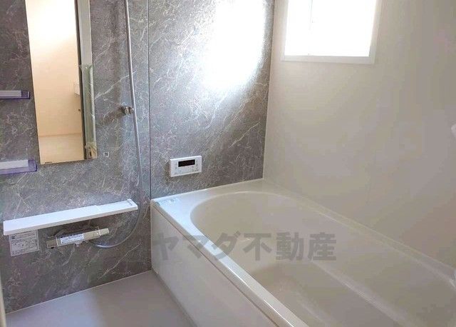 1日の疲れを癒すくつろぎのバスルーム。足を伸ばしてもゆったりと入れるサイズです。お子様と一緒にお風呂に入っても狭くないですね^^