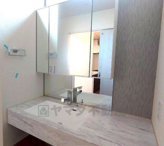 洗面台、洗濯機置き場、バスルームが連なっている、生活導線の考えられた作りになっています。