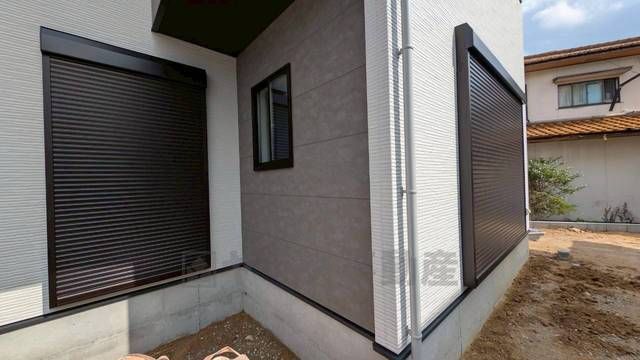 1階の窓には外観を損なわないシンプルなデザインのシャッター付きです。災害時の対策や防犯面でも安心ですね^^