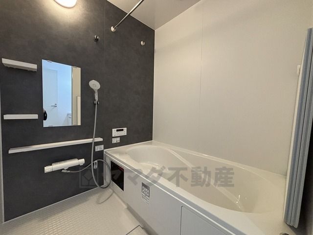 1日の疲れを癒すくつろぎのバスルーム。足を伸ばしてもゆったりと入れるサイズです。お子様と一緒にお風呂に入っても狭くないですね^^
