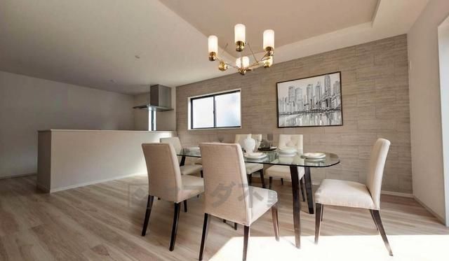 対面のカウンターキッチンなのでキッチンから会話が弾みそうなダイニングです。お友達や親せきをお招きするのも楽しみになりますね^^