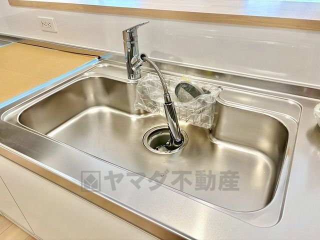 大きなお鍋も楽々洗える幅の広いシンクです^^ステンレスシンクなので簡単にお掃除できますよ。