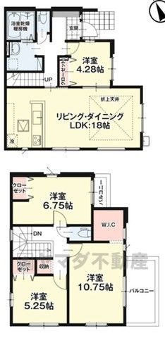 LDK18畳(1F)、洋4.2畳(1F)、洋10.7畳(2F)、洋6.7畳(2F)、洋5.2畳(2F) |