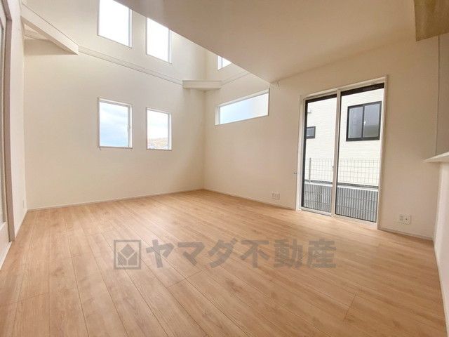 リビング上部は吹抜けになっており、開放感あふれるおしゃれな空間です。家具選びが楽しみになりますね^^
