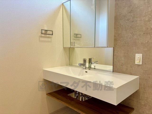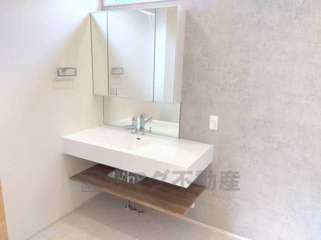 洗面台、洗濯機置き場、バスルームが連なっている、生活導線の考えられた作りになっています。