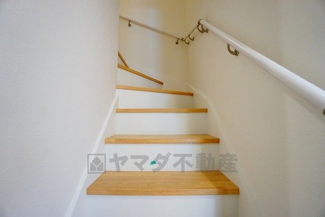 同仕様写真。現況と異なる場合は現況を優先します。日中でも暗くなりがちな階段には、小窓を配置し採光も考えられたつくり^^手摺付きなので安全に上り下りできますね^^
