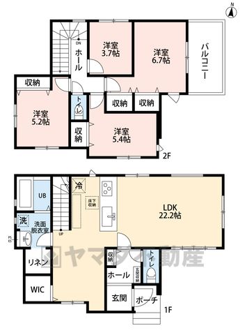 | 間取り詳細 | LDK22.2畳(1F)、洋6.7畳(2F)、洋5.2畳(2F)、洋3.7畳(2F) | 都市計画 | 市街化区域 |