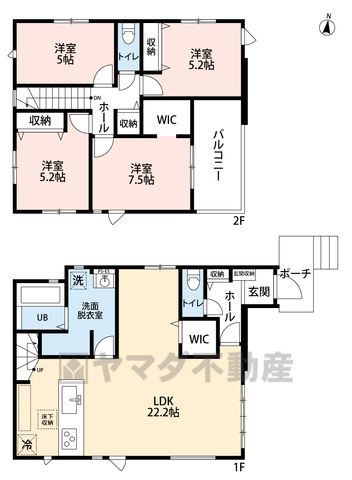 | 間取り詳細 | LDK22.2畳(1F)、洋7.5畳(2F)、洋5.2畳(2F)、洋5畳(2F) | 都市計画 | 市街化区域 |