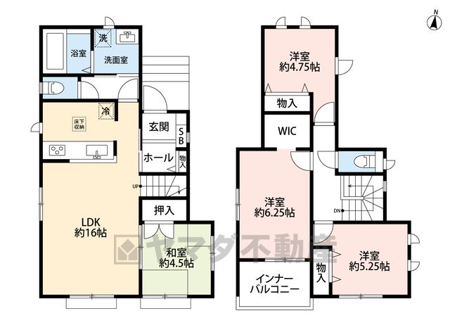 LDK16畳(1F)、和4.5畳(1F)、洋4.7畳(2F)、洋5.2畳(2F)、洋6.2畳(2F) |