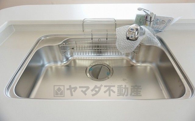 大きなお鍋も楽々洗える幅の広いシンクです^^ステンレスシンクなので簡単にお掃除できますよ。
