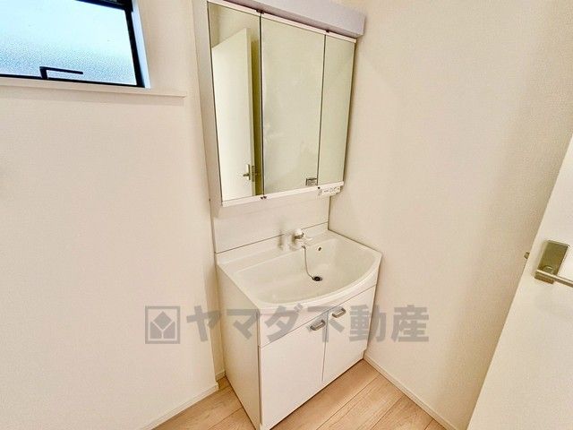 洗面台、洗濯機置き場、バスルームが連なっている、生活導線の考えられた作りになっています。 窓付きなので換気もしっかりできます^^