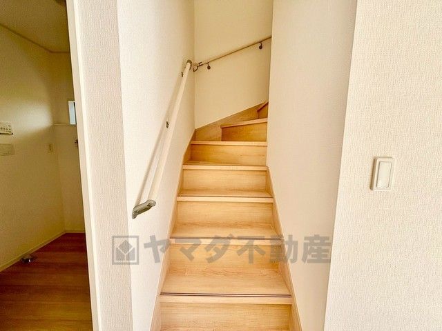 日中でも暗くなりがちな階段には、小窓を配置し採光も考えられたつくり^^手摺付きなので安全に上り下りできますね^^