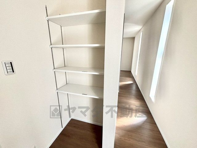 キッチンにはパントリーも完備しています。まとめ買いした食品や使用頻度の少ない調理器具の保管に便利ですね。