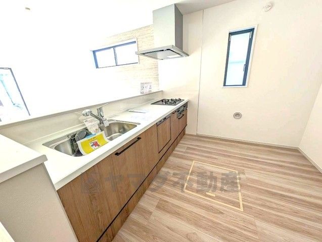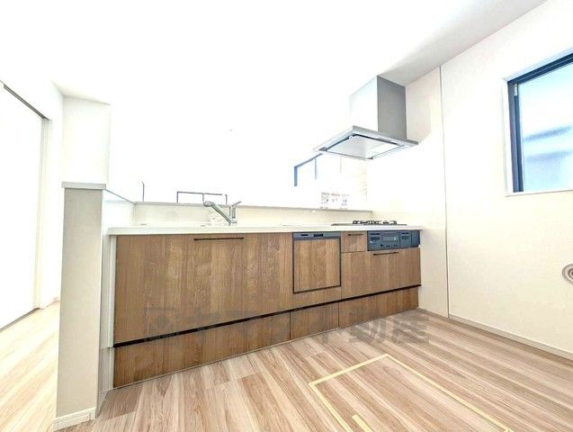 リビングダイニングを見渡せるキッチンです。家族とコミュニケーションをとりながら、楽しくお料理や片付けができそうです。
