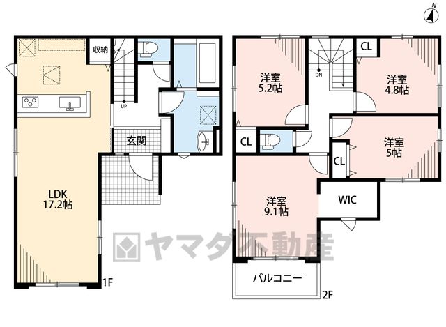 洋9.1畳(2F)、洋5.2畳(2F)、洋4.8畳(2F)、洋5畳(2F) |