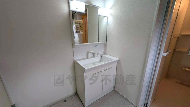 洗面台、洗濯機置き場、バスルームが連なっている、生活導線の考えられた作りになっています。 窓付きなので換気もしっかりできます^^