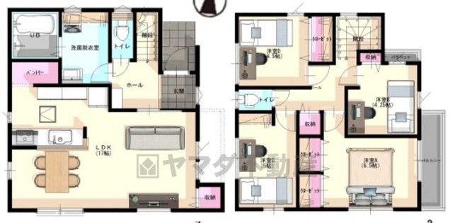 ウォシュレット付きトイレです。1階2階の2ヶ所にトイレがあるので、忙しい朝にもゆとりができますね^^